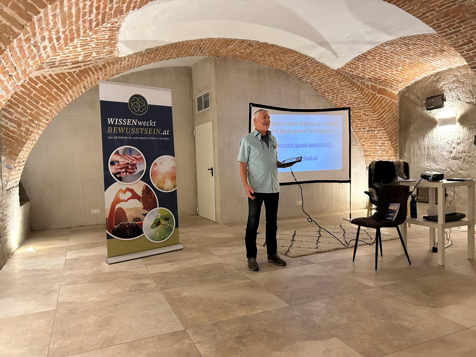Ein wunderschöner, persönlicher Abend im harmonischen Ambiente des Kellersaals in der Salzgrotte – unser toller Kärntner Partner Gernot Morgenfurt schaffte mit dem ersten Satz, die Aufmerksamkeit und Glaubwürdigkeit der ZuhörerInnen zu gewinnen
