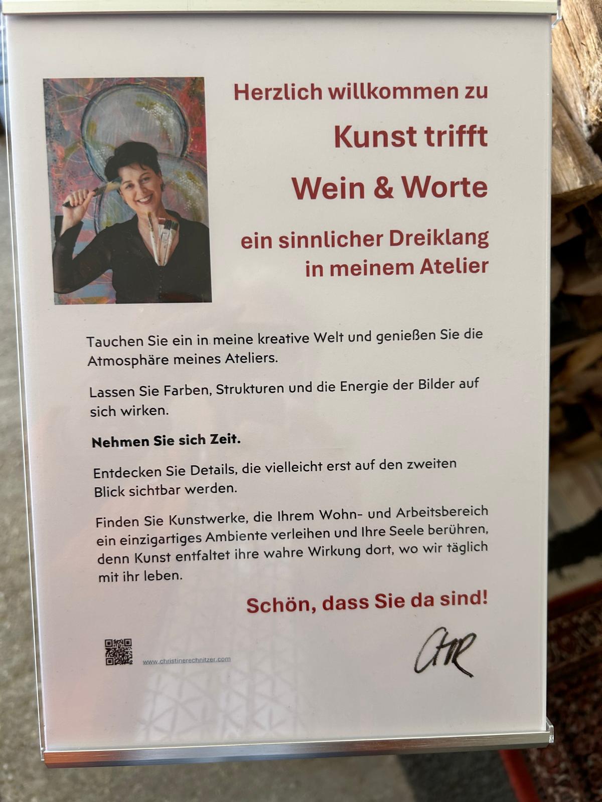 Die Veranstaltung „Kunst trifft Wein & Worte“ im Atelier Christine Rechnitzer war bereits im Vorfeld vollständig ausgebucht – ein klares Zeichen für das große Interesse an diesem besonderen Format.